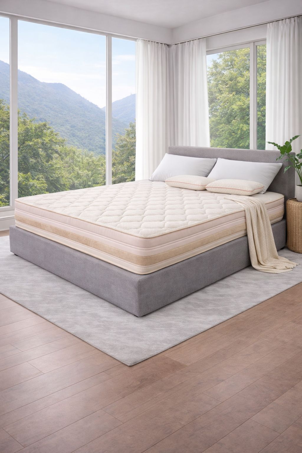 מזרן איכותי מבית מזרני קיסריה, עם אפשרות בחירה בין שני צדדים בדרגות קושי שונות. צד אחד עם ספוג סגול בדרגת קושי בינונית (3), רך ונעים לשינה מפנקת. הצד השני עם ספוג כחול קשיח בדרגת קושי 4, מעניק תמיכה יציבה ואיתנה. גובה כולל של 24 ס"מ, כיסוי בד מגבת רך ואוורירי. אידיאלי למי שמחפש גמישות ונוחות בהתאמה אישית. כולל 10 שנות אחריות.