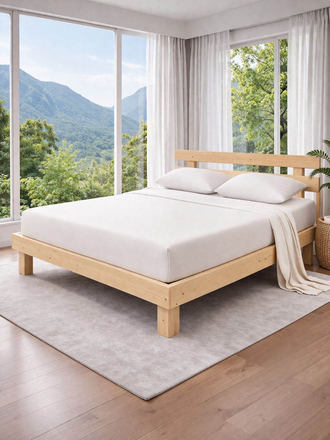 הסט כולל בסיס מיטה מעץ אורן מלא חזק ויציב הבנוי לעומסים גבוהים לאורך שנים,
