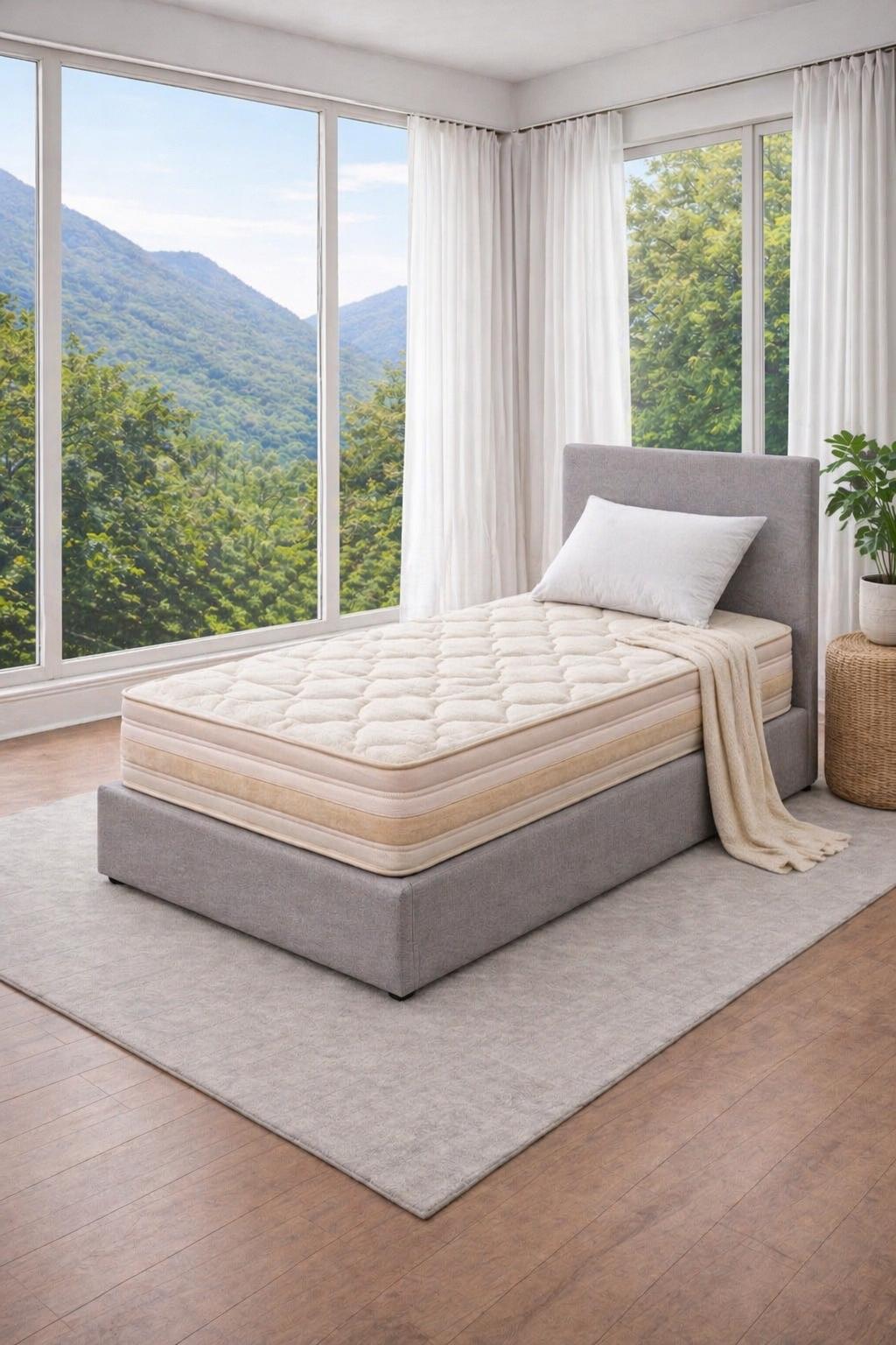 מזרן איכותי מבית מזרני קיסריה, עם אפשרות בחירה בין שני צדדים בדרגות קושי שונות. צד אחד עם ספוג סגול בדרגת קושי בינונית (3), רך ונעים לשינה מפנקת. הצד השני עם ספוג כחול קשיח בדרגת קושי 4, מעניק תמיכה יציבה ואיתנה. גובה כולל של 24 ס"מ, כיסוי בד מגבת רך ואוורירי. אידיאלי למי שמחפש גמישות ונוחות בהתאמה אישית. כולל 10 שנות אחריות.